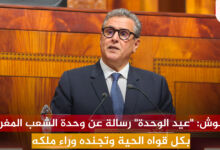 أخنوش: “عيد الوحدة” رسالة عن وحدة الشعب المغربي بكل قواه الحية وتجنده وراء ملكه