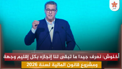 “مسار الإنجازات” ببني ملال.. أخنوش: نعرف جيدا ما تبقى لنا إنجازه بكل إقليم وجهة ومشروع قانون المالية لسنة 2026 يوازن بين الدعم الاجتماعي والتحفيز الاقتصادي من أجل نموذج تنموي جديد كما أشار إليه جلالة الملك