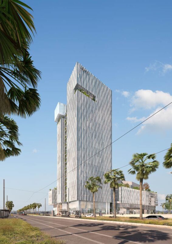ووصلت الأشغال لمراحل متقدمة من المشروع الذي إنطلقت أشغاله قبل أشهر، والذي يتكون من مبنى شاهق مكون من 25 طابقا و 4 طوابق تحت أرضية، حيث يضم البرج مبنيان للمكاتب ومبنيان للشقق السكنية بالإضافة إلى مقاهي ومطاعم .