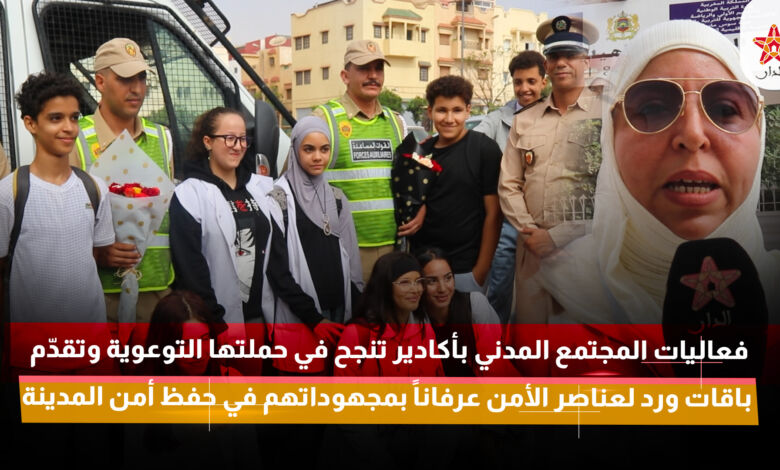 فعاليات المجتمع المدني بأكادير تنجح في حملتها التوعوية وتقدّم باقات ورد لعناصر الأمن عرفاناً بمجهوداتهم في حفظ أمن المدينة