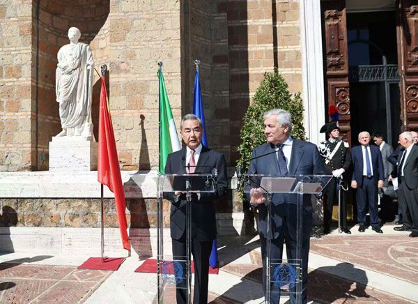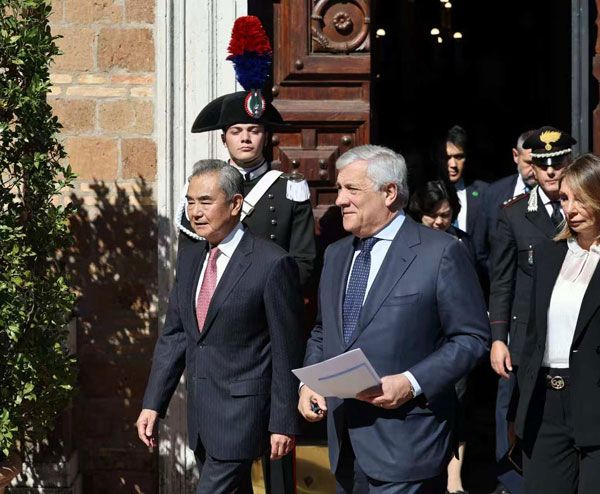 في 8 أكتوبر 2025 بالتوقيت المحلي، عقد عضو المكتب السياسي للجنة المركزية للحزب الشيوعي الصيني ووزير الخارجية وانغ يي ونائب رئيس الوزراء الإيطالي ووزير الشؤون الخارجية والتعاون الدولي أنطونيو تاجاني مؤتمراً صحفياً مشتركاً في روما.