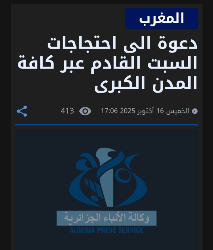 أقدمت وكالة الأنباء الجزائرية الرسمية على نشر محتوى يدعو بشكل صريح الشعب المغربي إلى الخروج للاحتجاج، في سابقة خطيرة تكشف حجم الانحراف الذي وصلت إليه الآلة الإعلامية الرسمية بالجزائر، والتي تجاوزت حدود المنافسة السياسية والدبلوماسية إلى محاولة زعزعة استقرار بلد جار.