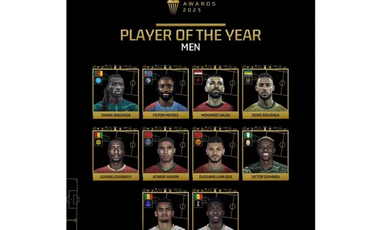 أعلن الاتحاد الإفريقي لكرة القدم (الكاف)، اليوم الأربعاء، عن القائمة الرسمية للمرشحين لجائزة أفضل لاعب إفريقي لعام 2025، وذلك عبر حسابه الرسمي على منصة “إكس”.