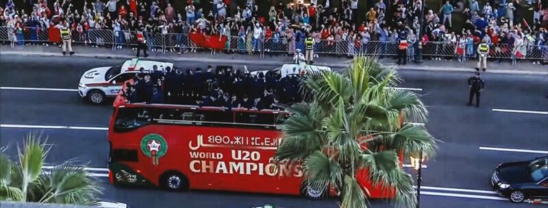 وسط هتافات “ديما مغرب” التي دوّت في أرجاء المدينة، شقّ “أشبال الأطلس” طريقهم في حافلة مكشوفة كُتب عليها بخط عريض “أبطال العالم”، بينما اصطفّت الجماهير على الأرصفة والشرفات، تلوّح بالأعلام وتغني للوطن في مشهد مؤثر أعاد للأذهان احتفالات مونديال قطر 2022، لكن هذه المرة بطابع شبابي خالص.