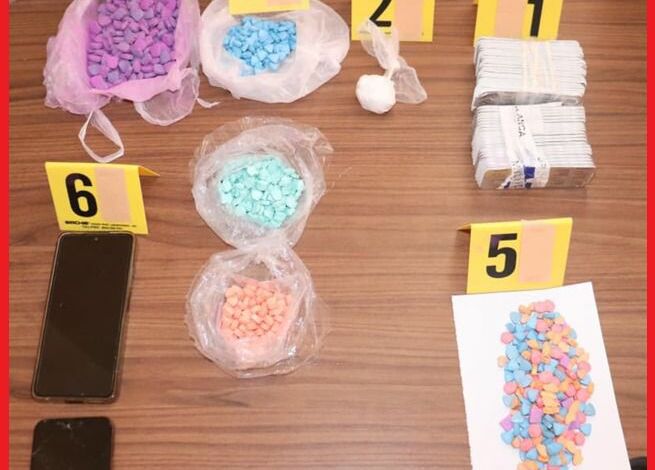 وقد جرى توقيف المشتبه فيه الأول على مستوى نقطة المراقبة المرورية بمدخل مدينة قلعة السراغنة، مباشرة بعد وصوله على متن حافلة لنقل المسافرين كانت قادمة من إحدى مدن شمال المملكة، حيث أسفرت عملية التفتيش المنجزة عن العثور بحوزته على 2040 قرص مخدر، من بينها 1198 قرص طبي مخدر من نوع ريفوتريل و 842 قرص مهلوس من نوع إكستازي، فضلا عن 15 غراما من مخدر الكوكايين.