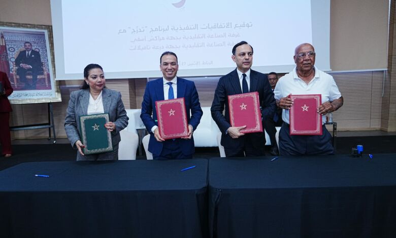 أشرف السيد لحسن السعدي كاتب الدولة المكلف بالصناعة التقليدية والاقتصاد الاجتماعي والتضامني بمعية السيد يونس السكوري وزير الإدماج الاقتصادي والمقاولة الصغرى والتشغيل والكفاءات، يوم الاثنين 27 أكتوبر 2025، على مراسيم حفل التوقيع على اتفاقيات الشراكة المتعلقة بإنجاز برنامج التكوين بالتدرج المهني في حرف الصناعة التقليدية لفترة 2025 – 2030. وقد تم توقيع هذه الاتفاقيات مع اثني عشر غرفة للصناعة التقليدية وأربع جمعيات مراكز التكوين والتأهيل في حرف الصناعة التقليدية، إلى جانب الوكالة الوطنية لإنعاش التشغيل والكفاءات.