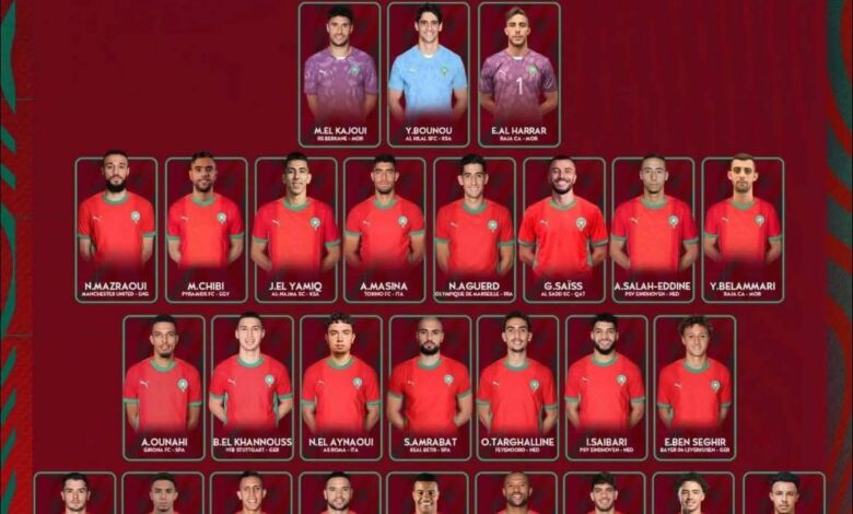 وفي ما يلي اللائحة الكاملة للمنتخب الوطني المغربي:
