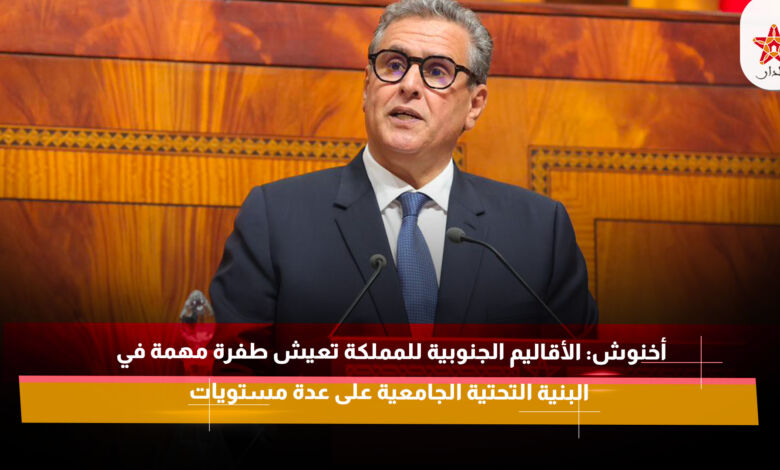 الرئيسية/سلايدر/أخنوش: الأقاليم الجنوبية للمملكة تعيش طفرة مهمة في البنية التحتية الجامعية على عدة مستويات سلايدرفيديو أخنوش: الأقاليم الجنوبية للمملكة تعيش طفرة مهمة في البنية التحتية الجامعية على عدة مستويات 11 نوفمبر، 2025 الوسومأخنوش: الأقاليم الجنوبية للمملكة تعيش طفرة مهمة في البنية التحتية الجامعية على عدة مستويات 11 نوفمبر، 2025 فيسبوك X لينكدإن Tumblr بينتيريست Reddit VKontakte واتساب تيلقرام مشاركة عبر البريد طباعة