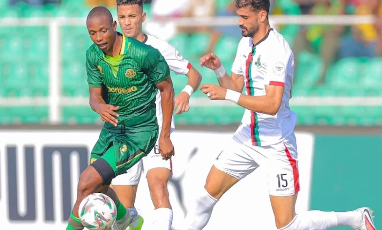ودخل ممثل الكرة المغربية المباراة بحذر واضح خلال الدقائق الأولى، في محاولة لاحتواء اندفاع الفريق التنزاني الذي فرض ضغطا مكثفا منذ البداية، مستغلا عاملي الأرض والجمهور لتهديد مرمى الحارس رضا التكناوتي. وكاد الفريق المضيف أن يفتتح النتيجة في الدقيقة 30 عبر رأسية خطيرة من سيليستين، غير أن التكناوتي تصدى لها ببراعة وأنقذ مرمى فريقه من هدف محقق.