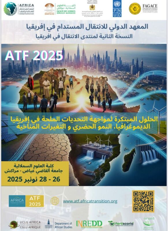 ينظّم المعهد الدولي للانتقال المستدام في إفريقيا من26 إلى 28 نوفمبر 2025 بكلية العلوم السملالية التابعة لجامعة القاضي عياض – مراكش، الدورة الثانية من ملتقاه السنوي منتدى الانتقال في إفريقيا .ATF 2025
