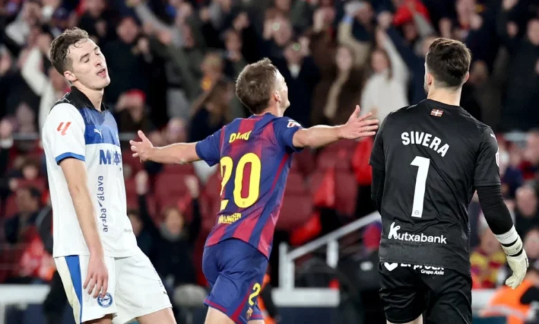 وأحرز ثلاثية برشلونة كل من لامين جمال (د 8) وداني أولمو (د 26 و90 3)، بينما سجل لألافيس بابلو إيبانيس (د 1).