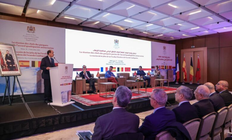 في خطوة تعكس قوة الشراكات الأمنية والقضائية بين المملكة المغربية وشركائها الأوروبيين، احتضنت مدينة الرباط صباح الأربعاء 10 دجنبر 2025 الاجتماع رفيع المستوى لرؤساء النيابات العامة للدول الأطراف في الاتفاق الرباعي لمكافحة الإرهاب، والذي يضم المغرب وفرنسا وبلجيكا وإسبانيا. وقد ترأس الجلسة الافتتاحية السيد هشام البلوى، الوكيل العام للملك لدى محكمة النقض ورئيس رئاسة النيابة العامة.