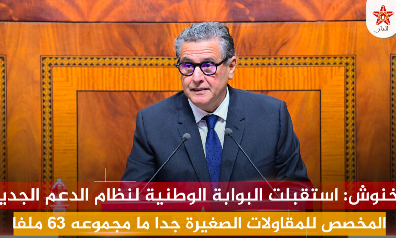 أخنوش: استقبلت البوابة الوطنية لنظام الدعم الجديد المخصص للمقاولات الصغيرة جدا والصغرى والمتوسطة ما مجموعه 63 ملفا استثماريا