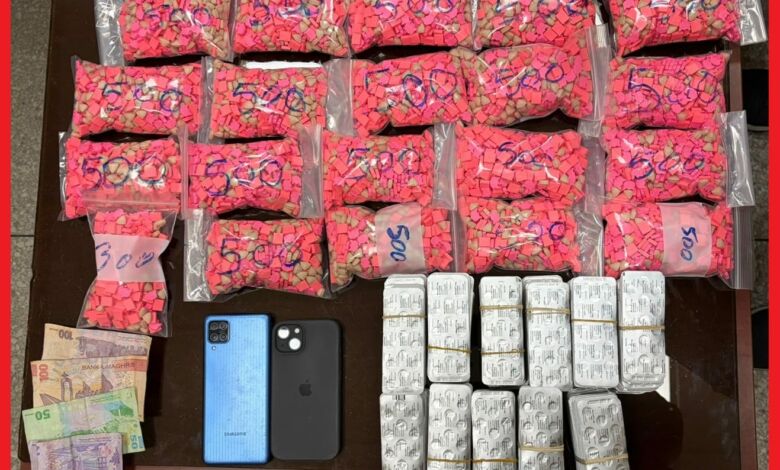 وقد أسفرت عملية التفتيش عن العثور بحوزة المشتبه فيه على 15 ألفا و755 قرصا مخدرا، من بينها 9800 قرصا مهلوسا من نوع إكستازي و⁠5955 قرصا طبيا مخدرا من نوع ريفوتريل، علاوة على مبلغ مالي يشتبه في كونه من متحصلات هذا النشاط الإجرامي