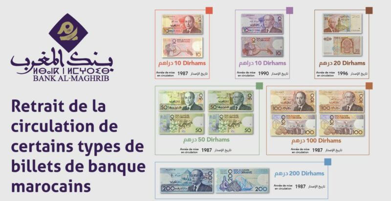 وأوضح البلاغ أن القرار يأتي استنادًا إلى مقتضيات المرسوم رقم 2.25.966 الصادر بتاريخ 23 دجنبر 2025، ويهم أوراقًا بنكية تم طرحها للتداول خلال سنوات سابقة، تشمل فئات 10 و50 و100 و200 درهم الصادرة سنة 1987، بالإضافة إلى ورقة 10 دراهم الصادرة سنة 1990، وورقة 20 درهم الصادرة سنة 1996.