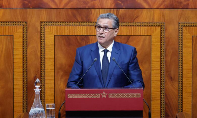 أكد رئيس الحكومة، عزيز أخنوش، اليوم الإثنين بمجلس النواب، أن الحكومة تواصل تنزيل ورش الإصلاحات الكبرى، في انسجام تام مع التوجيهات السامية لصاحب الجلالة الملك محمد السادس نصره الله، وذلك عبر ترسيخ الاستثمار المنتج للثروة كخيار استراتيجي لتحفيز النمو الاقتصادي وتحقيق التنمية الشاملة.