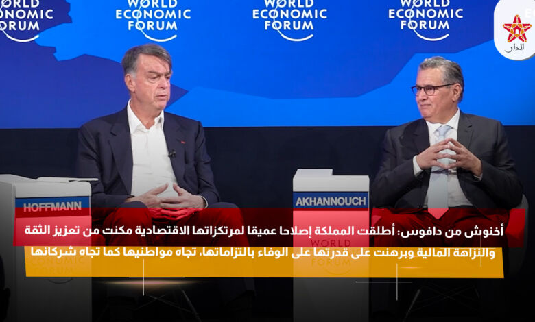 أخنوش من دافوس: أطلقت المملكة إصلاحا عميقا لمرتكزاتها الاقتصادية مكنت من تعزيز الثقة والنزاهة المالية وبرهنت على قدرتها على الوفاء بالتزاماتها، تجاه مواطنيها كما تجاه شركائها