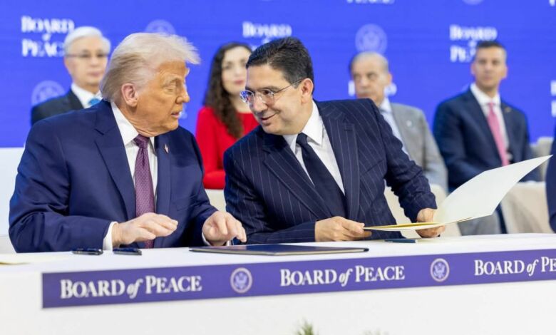 وقد وقّع السيد ناصر بوريطة، وزير الشؤون الخارجية والتعاون الإفريقي والمغاربة المقيمين بالخارج، على ميثاق المجلس، ممثّلًا عن صاحب الجلالة الملك محمد السادس، الذي وافق على الانضمام إلى المجلس بعد دعوة رفيعة المستوى من الرئيس الأمريكي. وقد جاءت هذه الدعوة بالنظر إلى المكانة البارزة التي يضطلع بها جلالته في جهود السلام، إقليميًا وعالميًا، حيث لطالما شكّلت المملكة المغربية أرضًا للحوار، وراعيةً لمشاورات المصالحة؛ ولعلّ أبرز مثال على ذلك اتفاق الصخيرات (2015) واتفاق بوزنيقة (2020)، اللذان وقّعت عليهما أطراف الصراع الليبي، وأسهما في وضع حدٍّ لسنوات من الحرب الأهلية الليبية، إضافة إلى اتفاق الرباط 2022 للمصالحة الفلسطينية بين الفصائل.