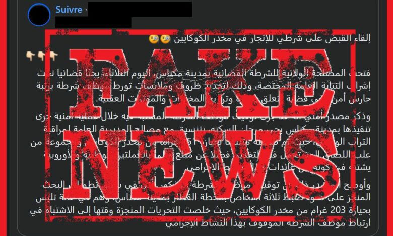 ولاية أمن مكناس تنفي توقيف شرطي بتهمة ترويج الكوكايين وتفتح بحثًا في مروّجي الخبر الزائف