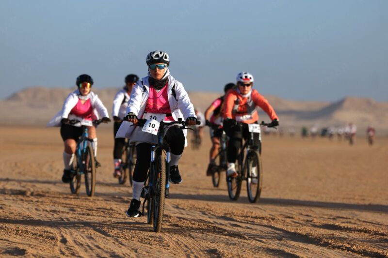 وبعد وضع الدراجات في المنطقة المخصصة لها، خاضت المشاركات سباق “الكوسترينغ” (الذي يجمع بين عدة أنشطة ساحلية) وصولاً إلى “الكثبان البيضاء” (Dune Blanche) قبل العودة عبر الشاطئ. وقد امتد الجزء الثاني من سباق الدراجات على مسافة 8.8 كيلومترات من المسالك الرملية حتى نقطة الوصول.