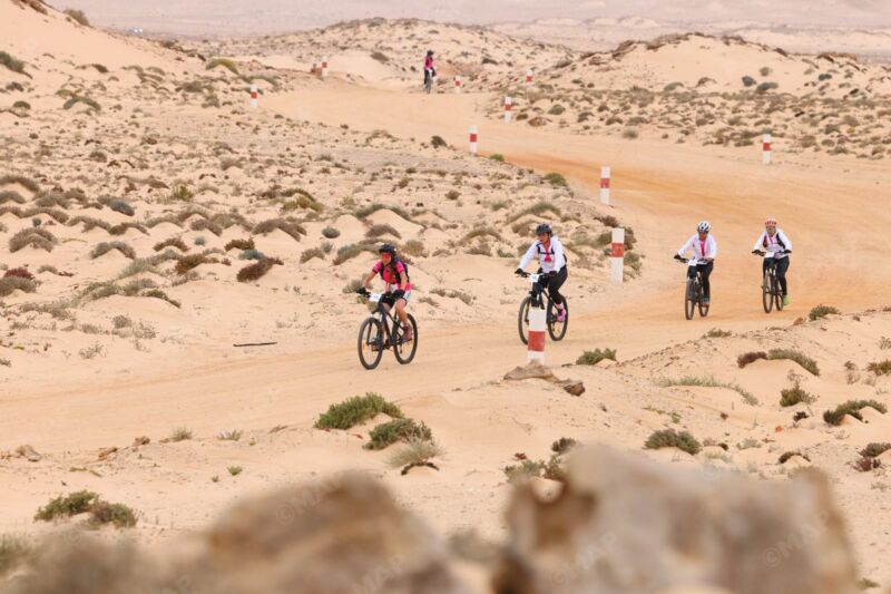 وفي هذه المرحلة من التحدي، استهلت المشاركات المنافسات المبرمجة بسباق للدراجات الهوائية على مسافة 3 كيلومترات من الرمال، للمرور بعد ذلك بمسارات الصعود بطول كيلومترين ثم عبور تضاريس متنوعة لمسافة 7.7 كيلومترات وصولاً إلى نقطة التزود (الكيلومتر 12.7).