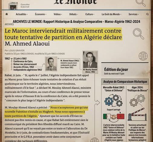 سلطت وثائق تاريخية الضوء على مرحلة مفصلية من العلاقات بين المغرب والجزائر، مواقف مغايرة تمامًا لما يروج له اليوم في بعض الخطابات الإعلامية والسياسية. فقد أظهرت أرشيفات صحيفة Le Monde الفرنسية، الصادرة في يونيو 1962، معطيات واضحة حول موقف المغرب من وحدة التراب الجزائري في أعقاب الاستقلال.