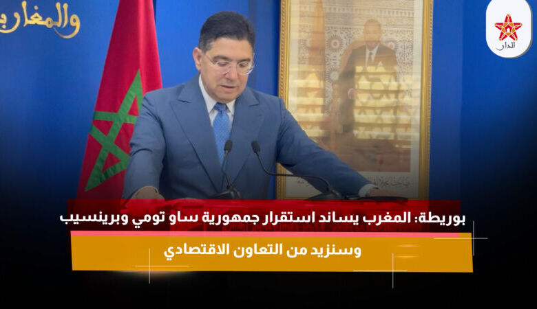 الرئيسية/سلايدر/بوريطة: المغرب يساند استقرار جمهورية ساو تومي وبرينسيب وسنزيد من التعاون الاقتصادي سلايدرفيديو بوريطة: المغرب يساند استقرار جمهورية ساو تومي وبرينسيب وسنزيد من التعاون الاقتصادي 14 أبريل، 2026 14 أبريل، 2026 فيسبوك X لينكدإن Tumblr بينتيريست Reddit VKontakte واتساب تيلقرام مشاركة عبر البريد طباعة