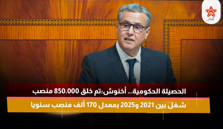 الحصيلة الحكومية… أخنوش:تم خلق 850.000 منصب شغل بين 2021 و2025 بمعدل 170 ألف منصب سنويا