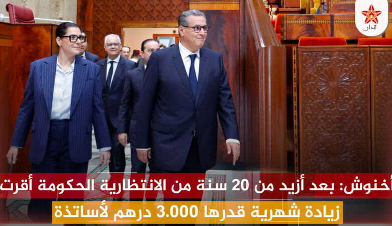 الحصيلة الحكومية.. أخنوش: بعد أزيد من 20 سنة من الانتظار الحكومة أقرت زيادة شهرية قدرها 3.000 ‏درهم لأساتذة التعليم العالي
