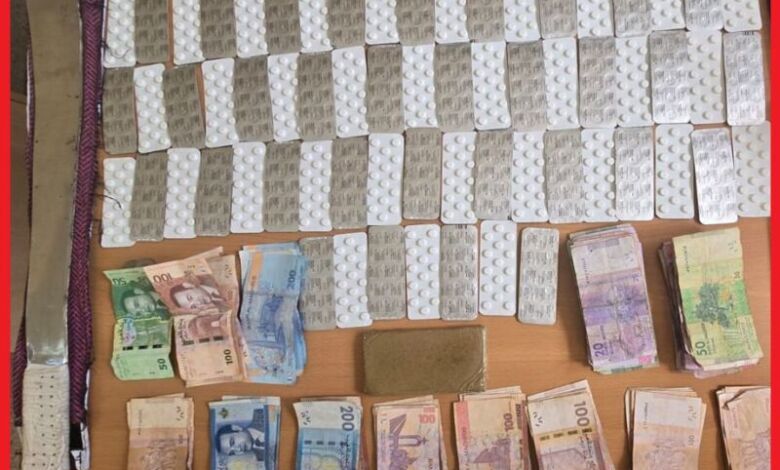 وقد جرى توقيف المشتبه فيهم وهم في حالة تلبس بترويج المخدرات، حيث أسفرت عملية التفتيش عن العثور بحوزتهم على 960 قرص مخدر من نوع ريفوتريل وكمية من مخدر الشيرا، علاوة على سلاح أبيض ومبلغ مالي يشتبه في كونه من متحصلات هذا النشاط الإجرامي.