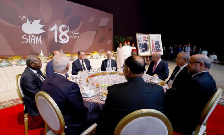 أقام صاحب الجلالة الملك محمد السادس، نصره الله، اليوم الخميس بمشور الستينية-صهريج السواني بمكناس، مأدبة عشاء على شرف المدعوين والمشاركين في الدورة الـ 18 للملتقى الدولي للفلاحة بالمغرب، ترأسها رئيس الحكومة عزيز أخنوش.