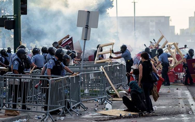 وفي حين أن معظم المظاهرات كانت سلمية، فقد انحدرت أخرى إلى العنف، تاركة أحياء في حالة من الفوضى، ونهبت متاجر وأحرقت سيارات، على الرغم من حظر التجول في أنحاء مختلفة بالبلاد، ونشر الآلاف من عناصر الحرس الوطني في 15 ولاية على الأقل.