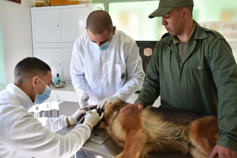 الملازم خديجة أوشطو طبيبة بيطرية ، الفوج الأول لتأنيس الكلاب العسكرية ببنسليمان ، ومؤطرة للمجندين في مرحلة التخصص ، قالت: ” أنه في هذه المرحلة من التخصص ، يتلقى المجندين مجموعة من الدروس النظرية والتطبيقية في مجال الصحة الحيوانية ، التي يتم تطبيقها خلال الأنشطة اليومية في العيادة البيطرية ، و المتمثلة في الفحص والكشف عن حالات المرض و تشخيصها ، وتقديم بعض الاسعافات الأولية ، وكذلك العلاجات الضرورية ، كما يتم اشراك المجندين في الفحوصات التكميلية مثل الكشف بالأشعة السينية ، و الفحص بالموجات فوق الصوتية.. ” وأكدت في نفس السياق، أن ” هذه الدروس النظرية و التطبيقية ، تخول للمجندين إكتساب مجموعة من القدرات و المهارات المهنية، ستمكنهم من ولوج سوق الشغل في مجال الصحة الحيوانية. “