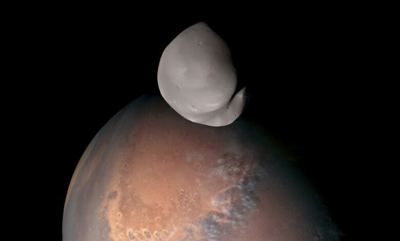 مسبار “الأمل” الفضائي الإماراتي يلتقط صوراً غير مسبوقة لأحد قمري المريخ