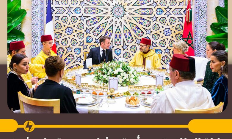 جلالة الملك يقيم مأدبة عشاء رسمية على شرف الرئيس الفرنسي وحرمه السيدة بريجيت ماكرون