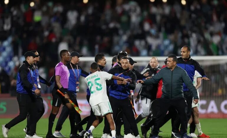 للإشارة، فقد اندلعت أعمال شغب وفوضى في المدرجات، بعد محاولات بعض جماهير المنتخب الجزائري اقتحام أرضية الملعب بمراكش، مازاد من توتر الأجواء بعد نهاية المواجهة.