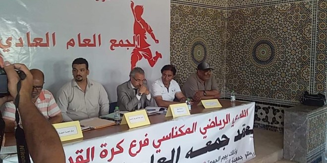 وصادق المكتب المديري، لجمعية النادي الرياضي المكناسي على فعاليات الجمع العام غير العادي المنعقد بتاريخ 27 يوليوز 2019 والذي على إثره جرت إقالة المكتب المسير لفرع كرة القدم، وانتخاب رئيس جديد، هو أبو خديجة، معلنا عن رفضه مصادقته على الجمع العام العادي المنعقد بتاريخ فاتح شتنبر و6 من الشهر ذاته 2019 بملعب الخطاطيف وبقاعة المرحوم عزيز الدايدي، والذي أفرز انتخاب جواد بحاجي.