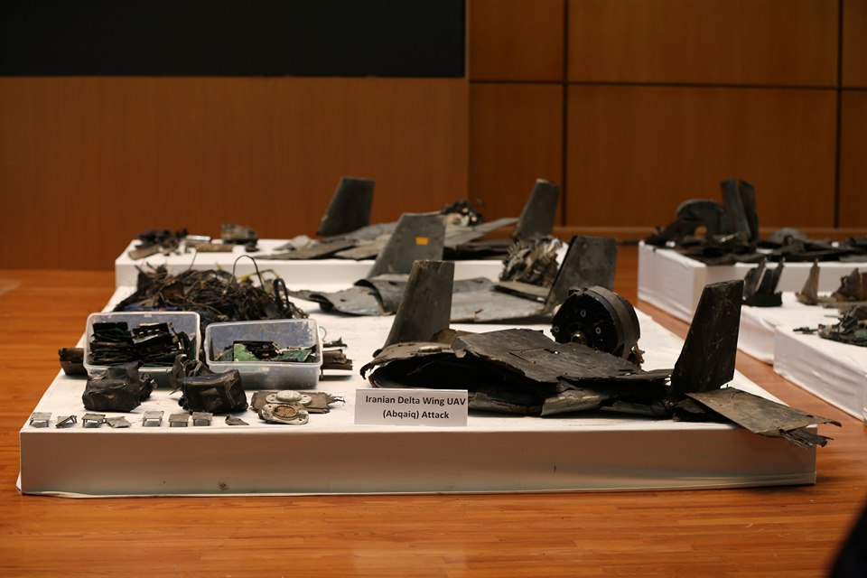 وحسب المتحدث باسم تحالف دعم الشرعية في اليمن، إن السعودية تملك أدلة وبراهين تثبت تورط إيران وعملائها في الشرق الأوسط في أنشطة إرهابية في المنطقة، بما في ذلك الهجمات التي طالت ناقلات نفط ومنشآت نفطية سعودية في الخليج في ماي الماضي. مضيفا في المؤتمر الصحافي ذاته، أن هجوم أرامكو، والذي استخدم فيه 18 طائرة مسيرة بدون طيار، و7 صواريخ من طراز كروز، لم ينطلق من اليمن، وإنما انطلق من الشمال وبالتأكيد كان مدعوما من إيران، في الوقت الذي قالت مصادر رسمية أمريكية لموقع CNN، إن الولايات المتحدة ترجح انطلاق الهجوم من الأراضي الإيرانية.