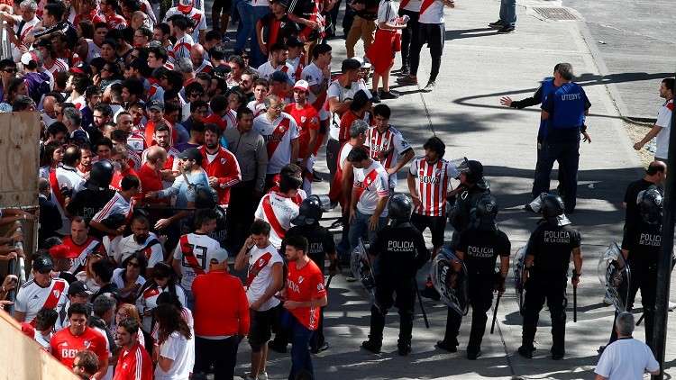 ونشبت مواجهات عنيفة بين الشرطة ومشجعي نادي "ريفر بلايت" بمحيط ملعب هذا الأخير، ورمى هؤلاء عناصر الأمن بالحجارة والعصي والقارورات الزجاجية، وردت عليهم الشرطة بإطلاق الغازات المسيلة للدموع لتفريقهم.